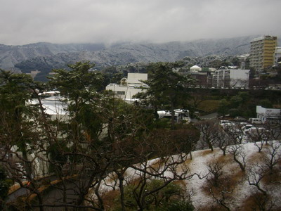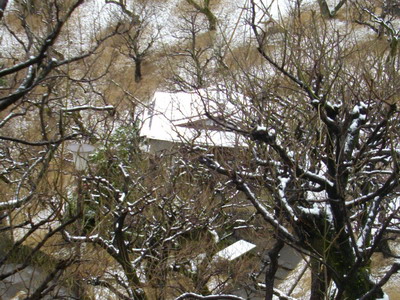 早朝、起きてベランダに出てみると、たしかに雪が降ったようだ