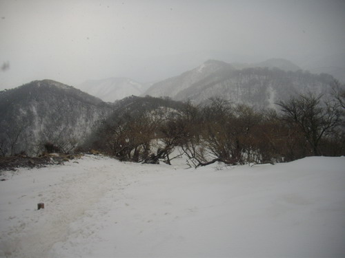 頂上に着く少し前から、雪が降り出しました